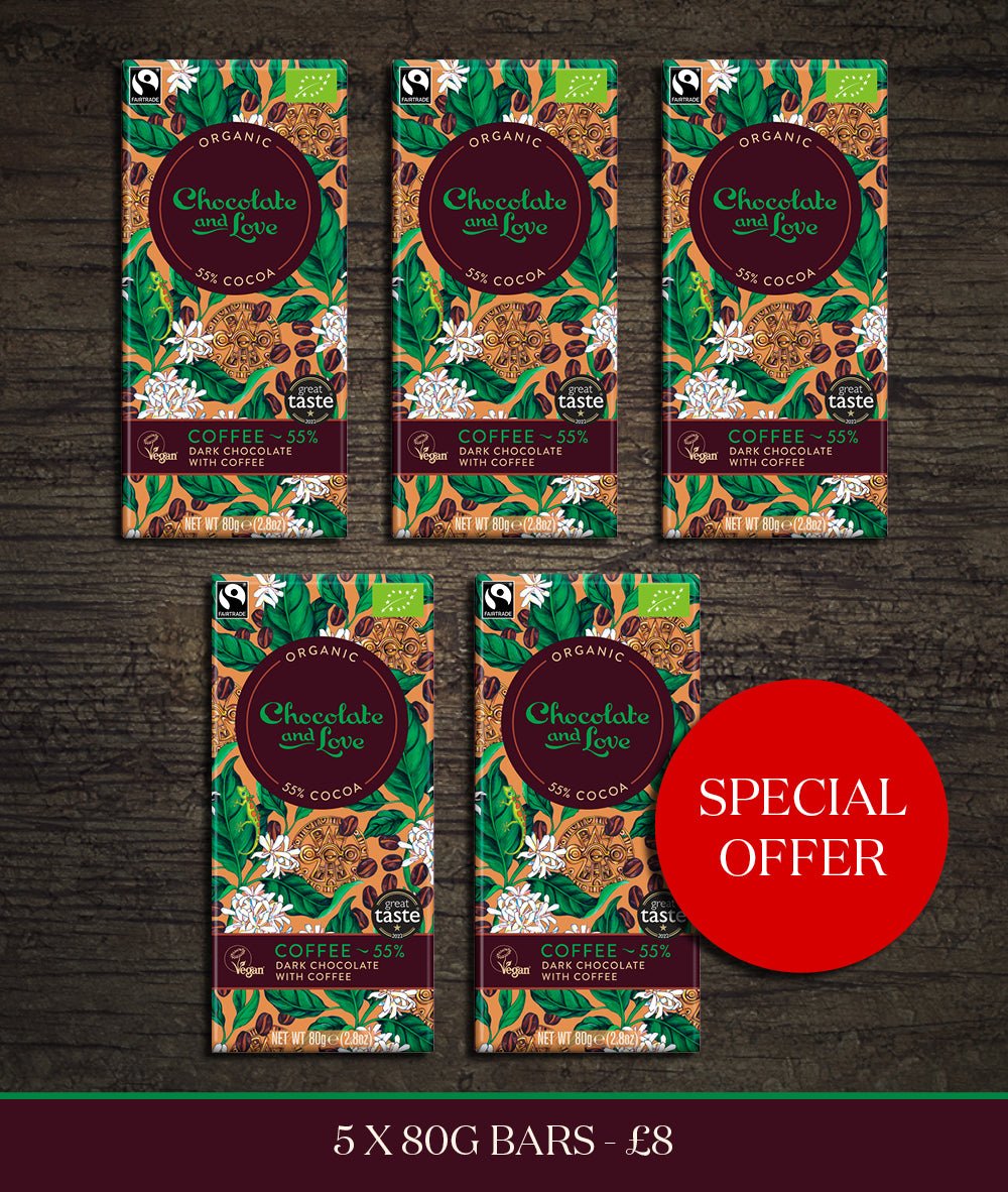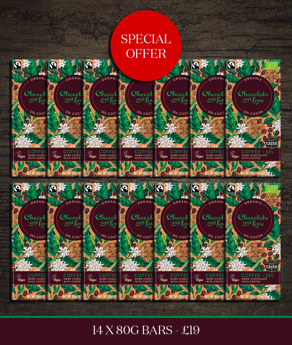 SHORT LIFE SALE - COFFEE 55% - DARK CHOCOLATE WITH ARABICA COFFEE BAR - BEST BEFORE DATE 01.04.2026